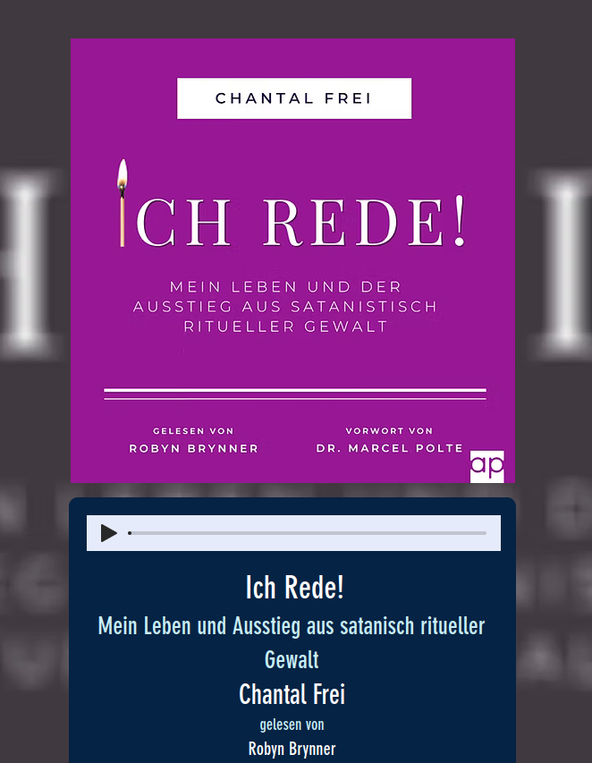 Today, Chantal Frei is able to speak out about her experiences as a survivor of satanic ritual abuse, spiritual abuse, and mind control in order to help others by providing insight and knowledge. The information provided in this book is by far not complete as the author can only share what she herself has experienced and understood. She states: “More and more I realize, that with my book, I can only scratch the surface of this topic.” Nonetheless, her personal account is unique and important. Chantal Frei is the first survivor with a German-speaking background who has been this deep in the inner circle of the Illuminati and has mustered enough courage to speak out about it. During cruel rituals, she met with heads of state, nobles, and celebrities. Therefore, she was taken to well-known places – such as the White House and a famous Spanish basilica – but also got into secret military facilities and a remote castle in Belgium. These places and people, some of which are also mentioned by other survivors, illustrate the terrifying extent of an abysmally dark phenomenon known as ritual abuse.